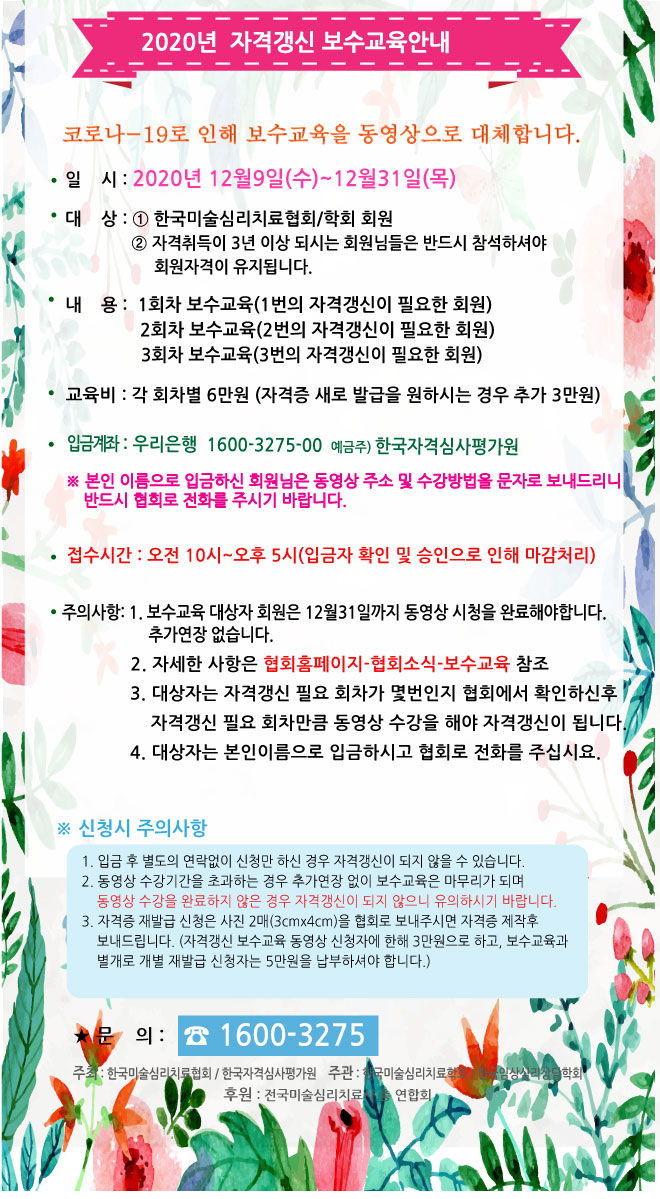 2020³â ÇϹݱâ Àڰݰ»½Å º¸¼ö±³À°¾È³»(12¿ù9ÀÏ~12¿ù31ÀÏ)