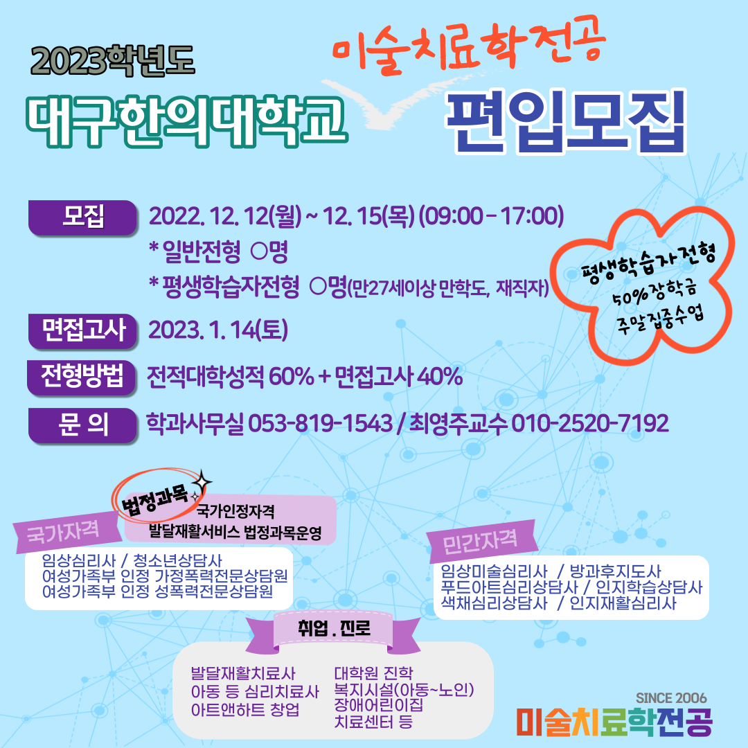 Á¦¸ñ ´ëÇÐ ÆíÀÔ] ´ë±¸ÇÑÀÇ´ëÇб³ ¹Ì¼úÄ¡·áÇÐ Àü°ø ÆíÀÔ»ý¸ðÁý(22. 12/12~15)