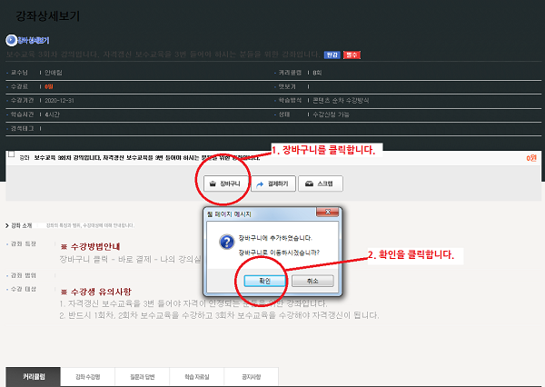 ¡Ú ȸ¿ø Çʵ¶»çÇ× ¡Ú Àڰݰ»½Å º¸¼ö±³À°Àº 1ȸÂ÷~6ȸÂ÷·Î ³ª´©¾îÁý´Ï´Ù. ¢º 1¹øÀÇ Àڰݰ»½Åº¸¼ö±³À°ÀÌ ÇÊ¿äÇϽźÐÀº 1ȸÂ÷ °Á¸¦ ½ÅûÇÏ½Ã¸é µË´Ï´Ù. 2ȸÂ÷, 3ȸÂ÷ °Á¸¦ ½ÅûÇÏ´Â °æ¿ì ÀÎÁ¤ÀÌ µÇÁö ¾Ê½À´Ï´Ù. ¢º 2¹øÀÇ Àڰݰ»½Åº¸¼ö±³À°ÀÌ ÇÊ¿äÇϽźÐÀº 1ȸÂ÷, 2ȸÂ÷ °Á¸¦ °°ÀÌ ½ÅûÇÏ½Ã¸é µË´Ï´Ù. 1ȸÂ÷ °Á¸¦ ¼ö°¿Ï·áÇϰí 2ȸÂ÷ °Á¸¦ ¼ö°ÇϽñ⠹ٶø´Ï´Ù. ¼ø¼¸¦ ¹Ù²Ù¾î¼ °Á¸¦ ¼ö°ÇÏ´Â °æ¿ì ÀÎÁ¤ÀÌ µÇÁö ¾Ê½À´Ï´Ù. ¢º 3¹øÀÇ Àڰݰ»½Åº¸¼ö±³À°ÀÌ ÇÊ¿äÇϽźÐÀº 1ȸÂ÷, 2ȸÂ÷, 3ȸÂ÷ °Á¸¦ °°ÀÌ ½ÅûÇÏ½Ã¸é µË´Ï´Ù. 1ȸÂ÷, 2ȸÂ÷ °Á¸¦ ¼øÂ÷ÀûÀ¸·Î ¼ö°¿Ï·áÇϰí 3ȸÂ÷ °Á¸¦ ¼ö°ÇϽñ⠹ٶø´Ï´Ù. ¼ø¼¸¦ ¹Ù²Ù¾î¼ °Á¸¦ ¼ö°ÇÏ´Â °æ¿ì ÀÎÁ¤ÀÌ µÇÁö ¾Ê½À´Ï´Ù.
